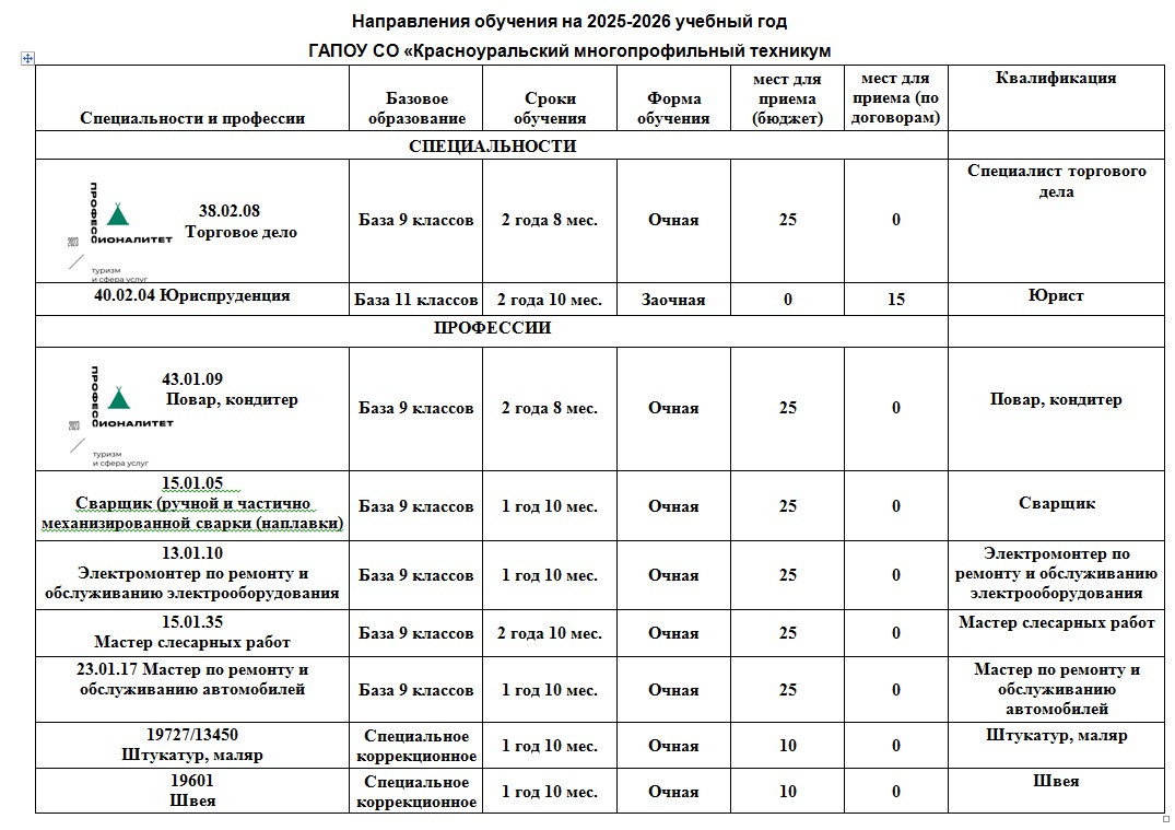 ГАПОУ СО "Красноуральский многопрофильный техникум" планирует набор