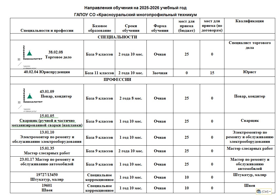 ГАПОУ СО "Красноуральский многопрофильный техникум" планирует набор