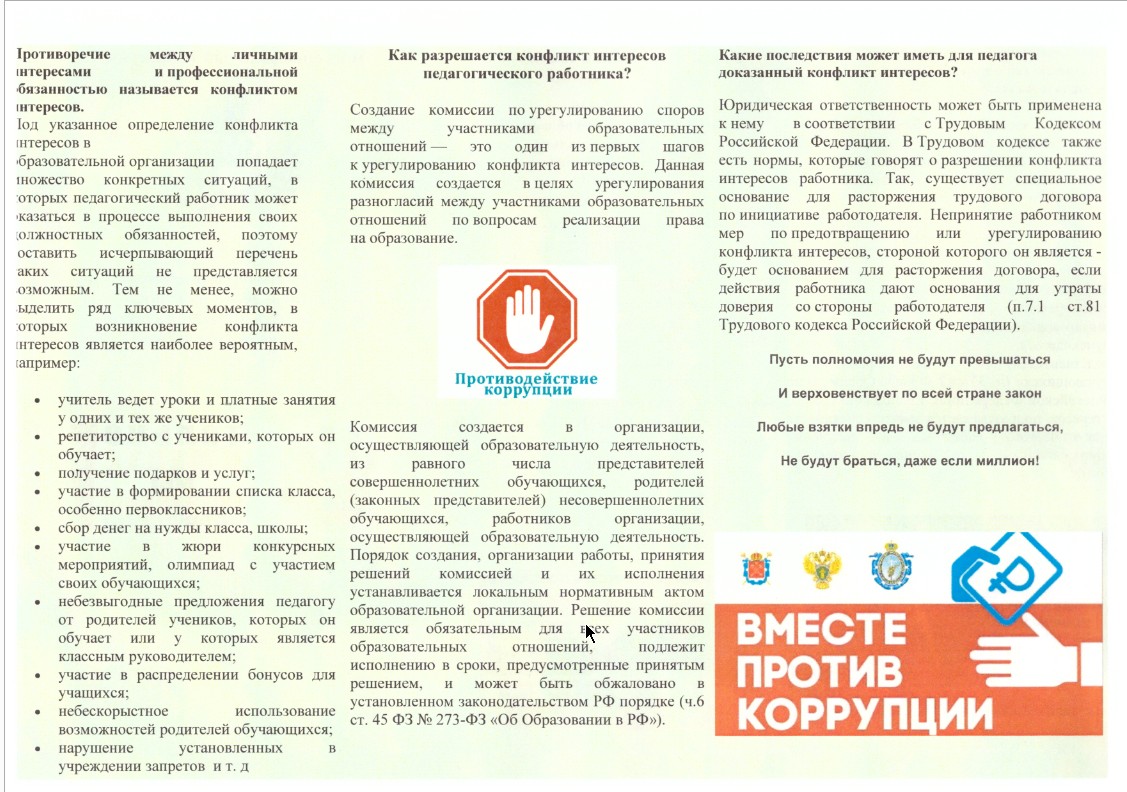 Конфликт интересов педагогических работников в общеобразовательных организациях