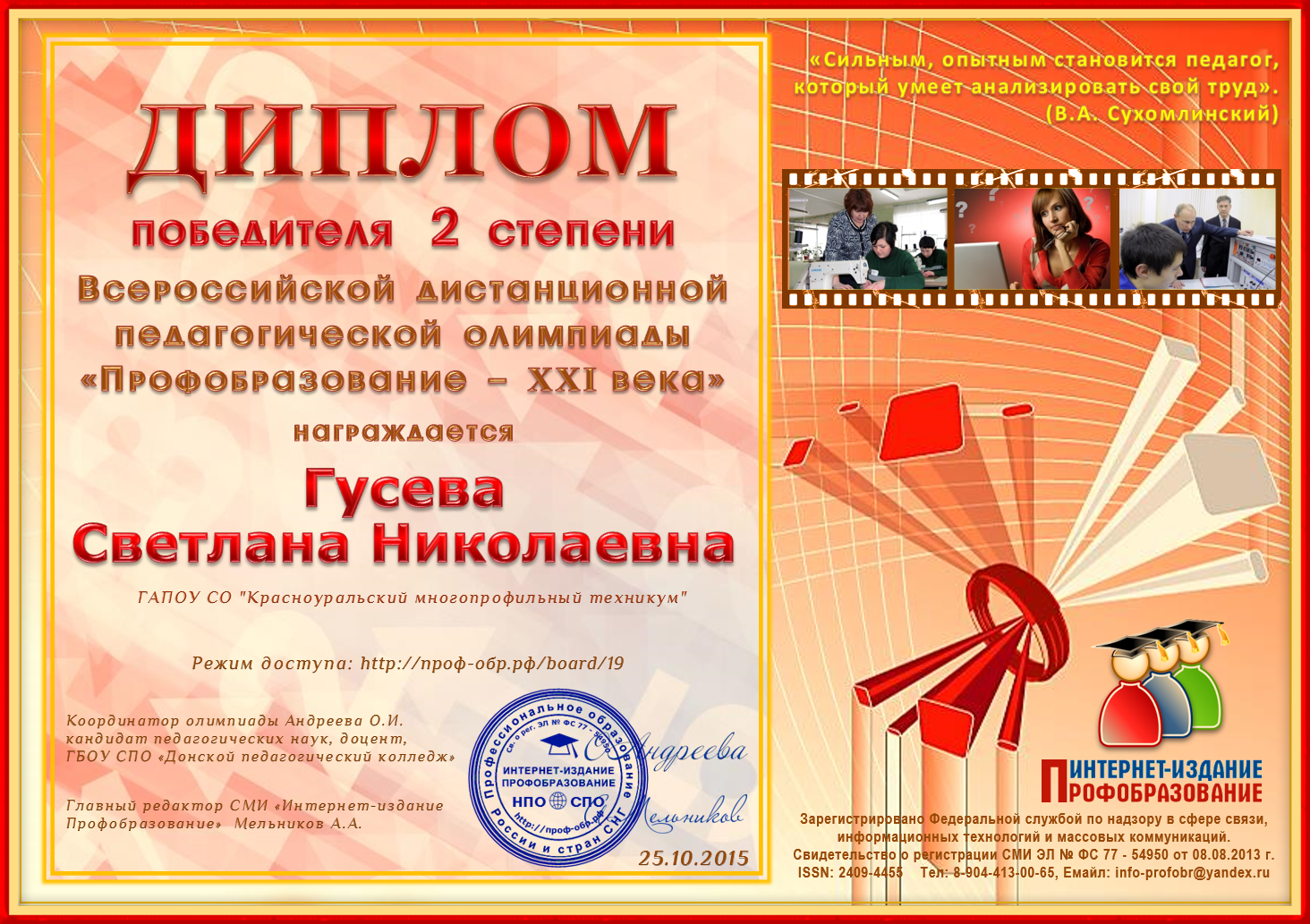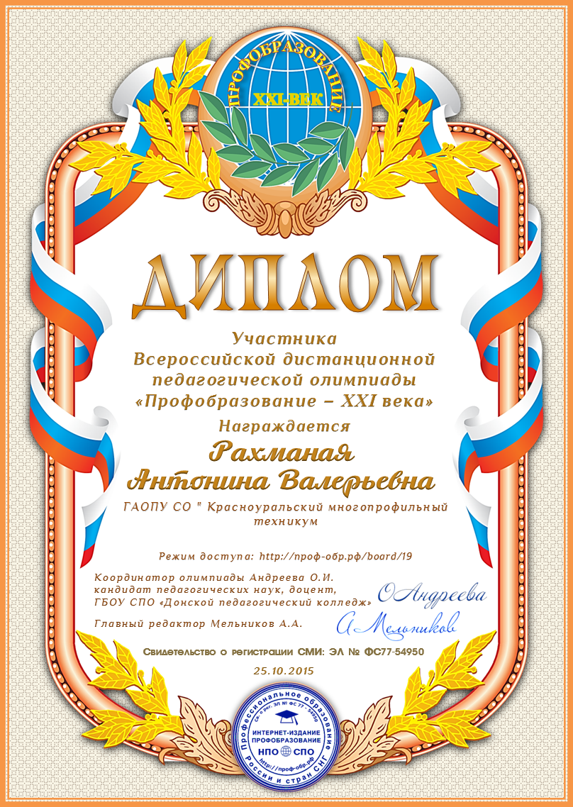 Дипломы Всероссийской дистанционной педагогической олимпиады