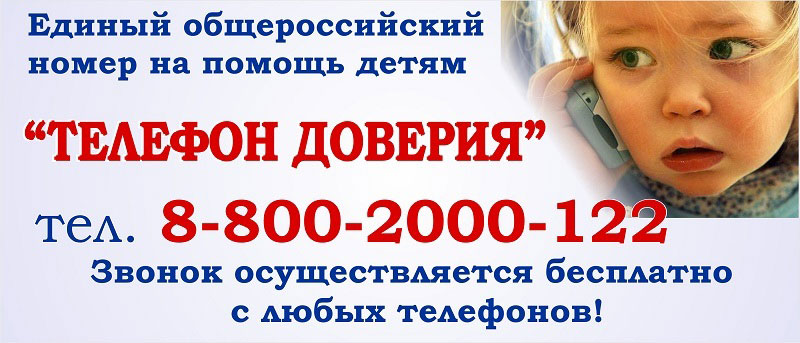 Единый общероссийский номер детского телефона доверия: 8-800-2000-122. Служба детского телефона доверия работает круглосуточно, анонимно и бесплатно, с домашнего и мобильного телефонов.